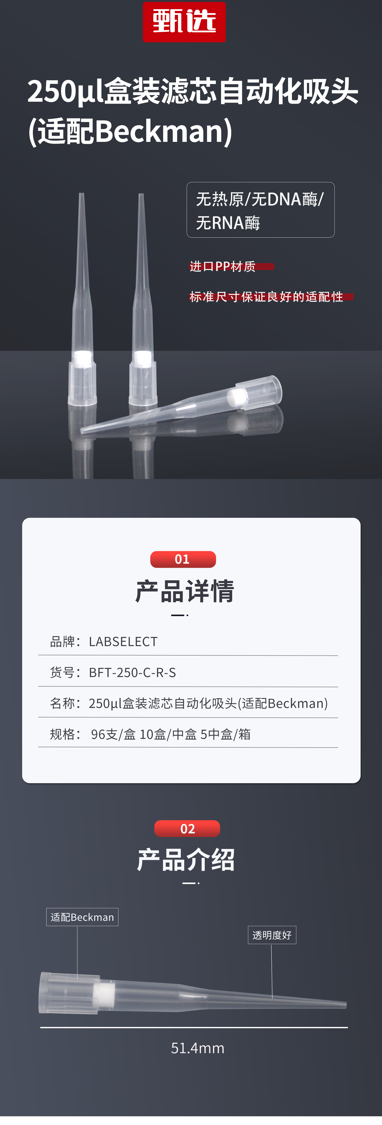 LABSELECT(甄选)BFT-250-C-R-S 250ul盒装滤芯自动化吸头(适配Beckman)