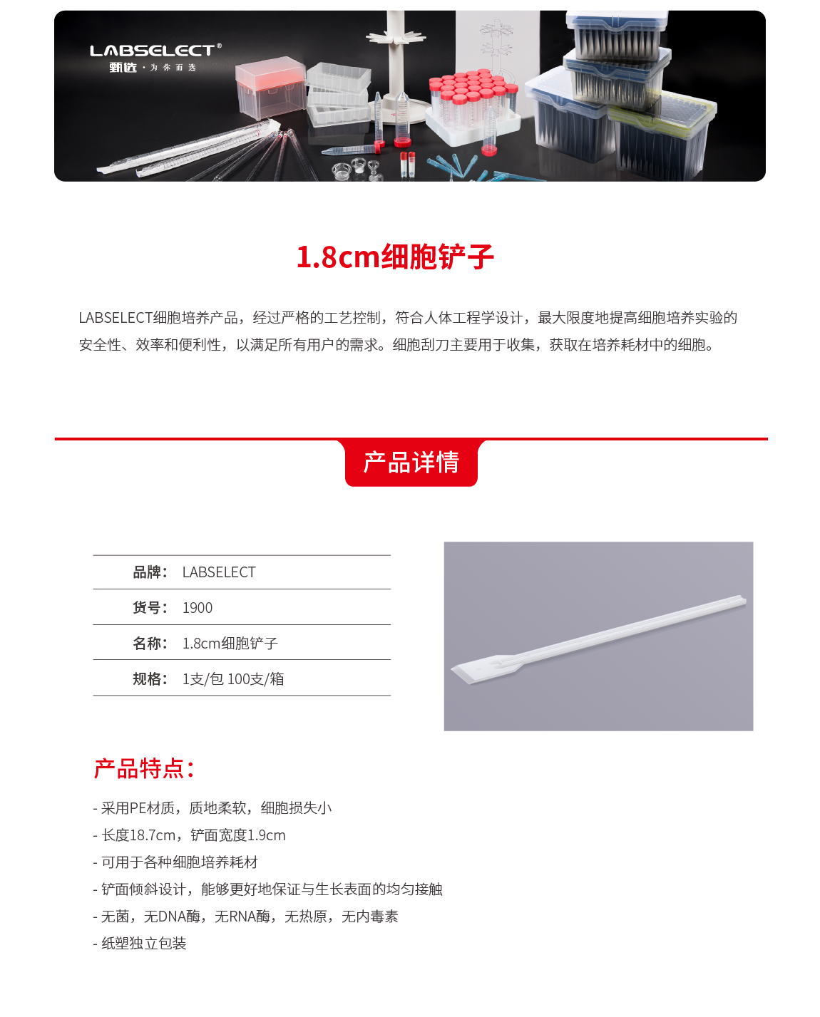 LABSELECT(甄选)1900 1.8cm细胞铲子
