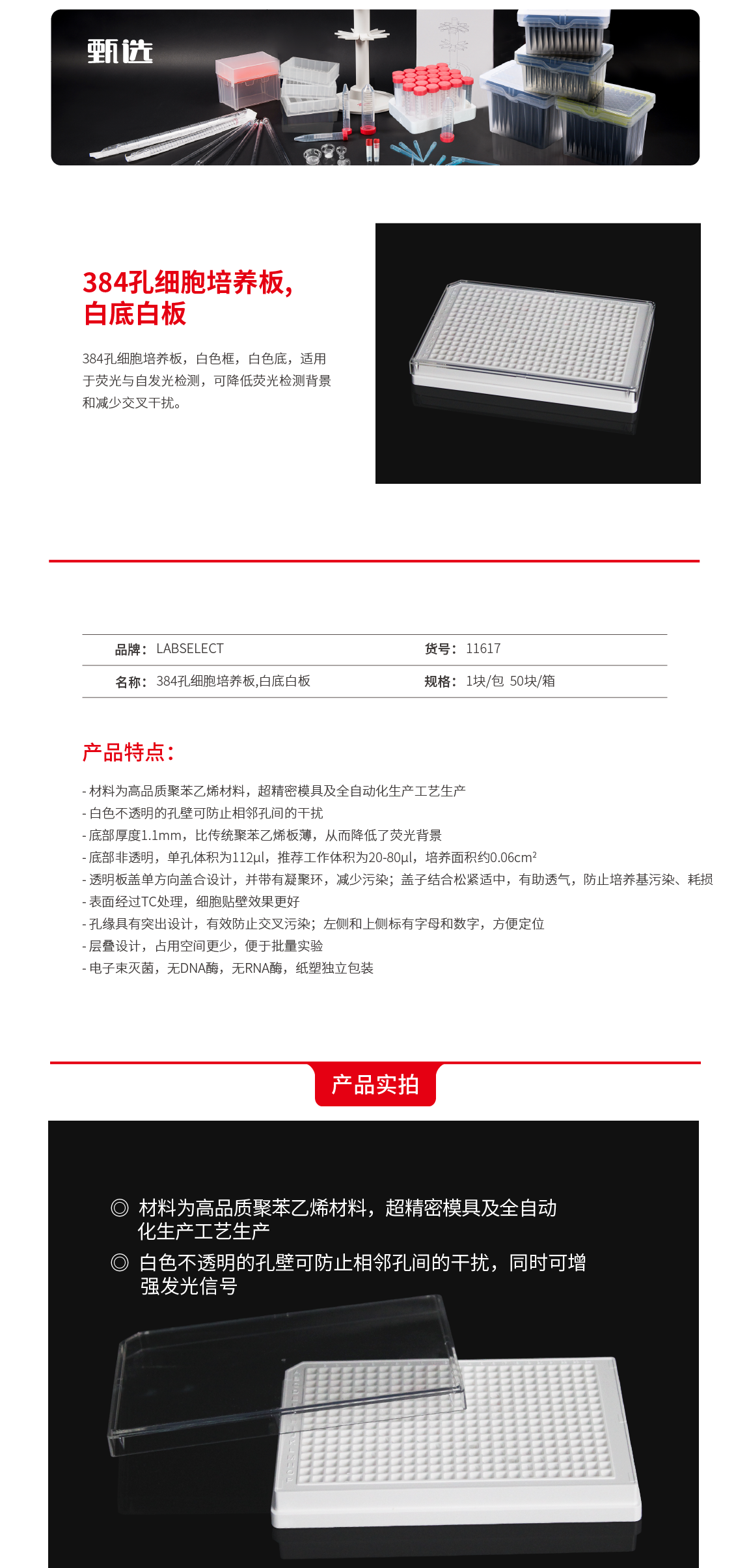 LABSELECT(甄选)11617 384孔细胞培养板,白底白板