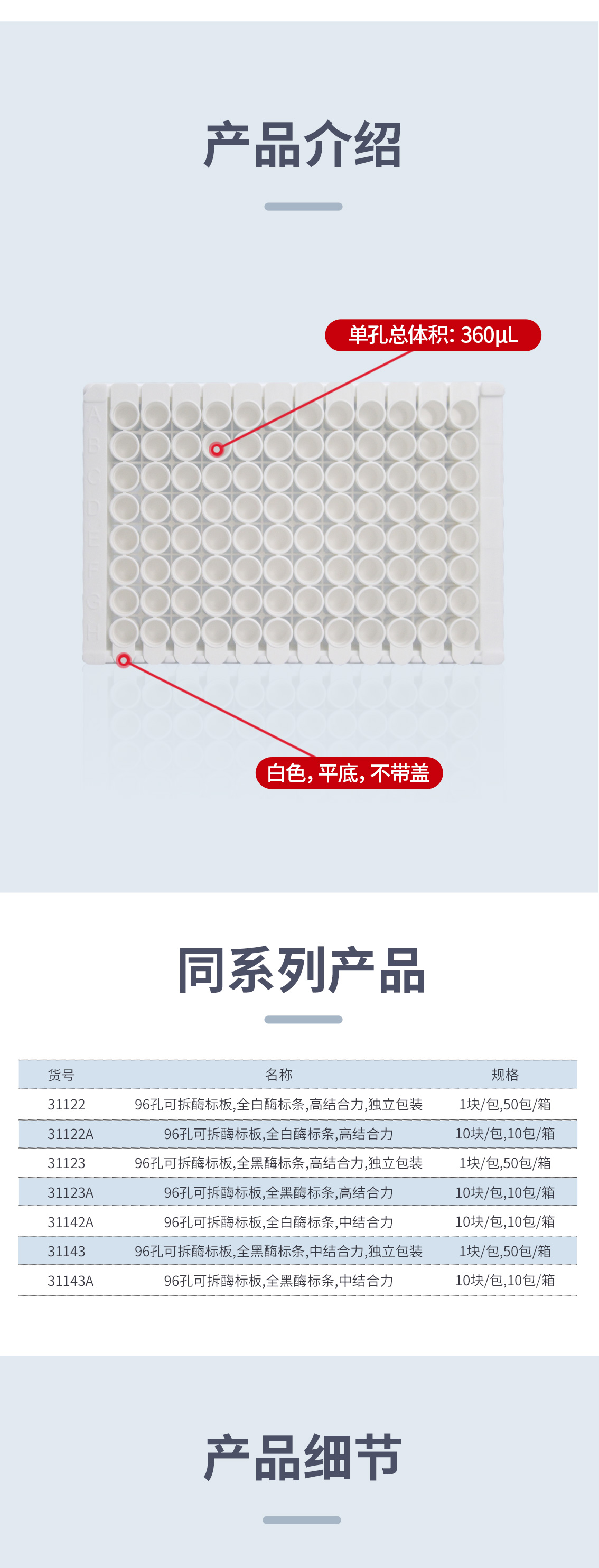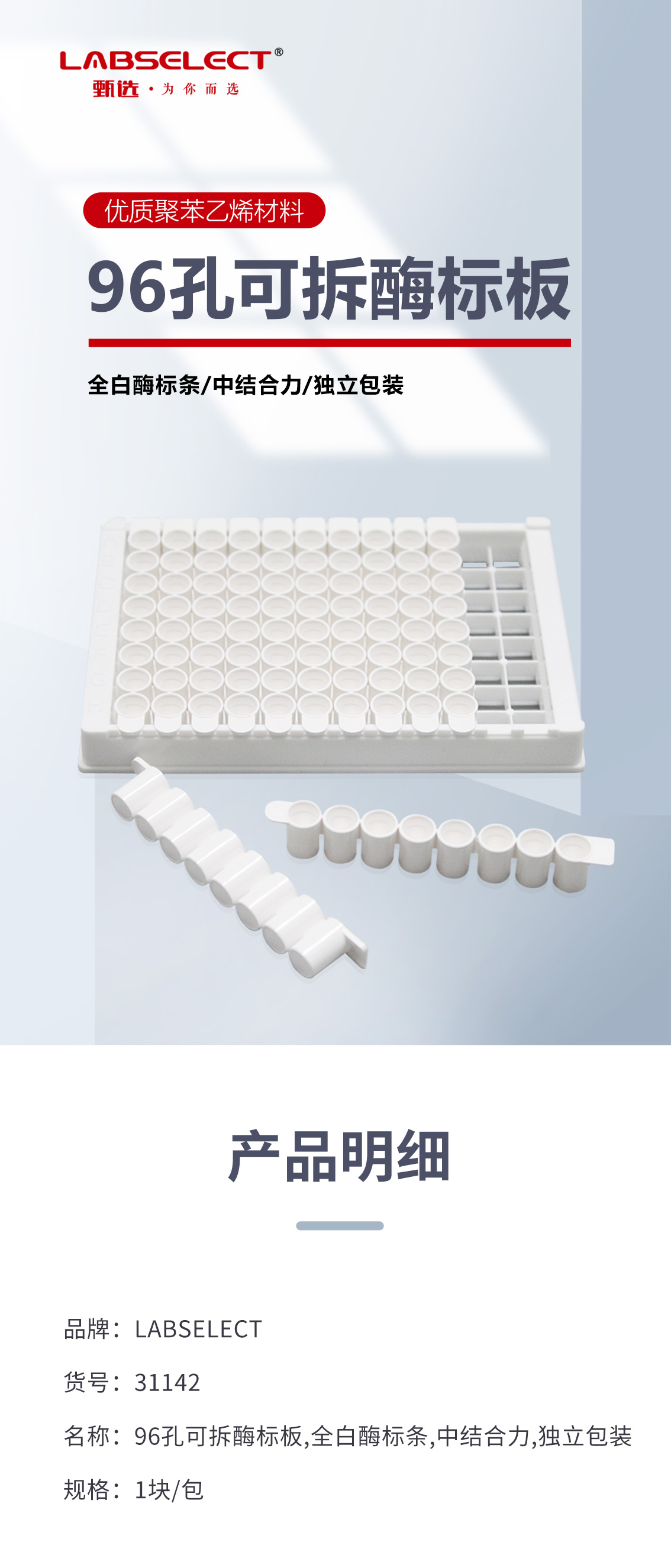 LABSELECT(甄选)31142 96孔可拆酶标板,全白酶标条,中结合力,独立包装