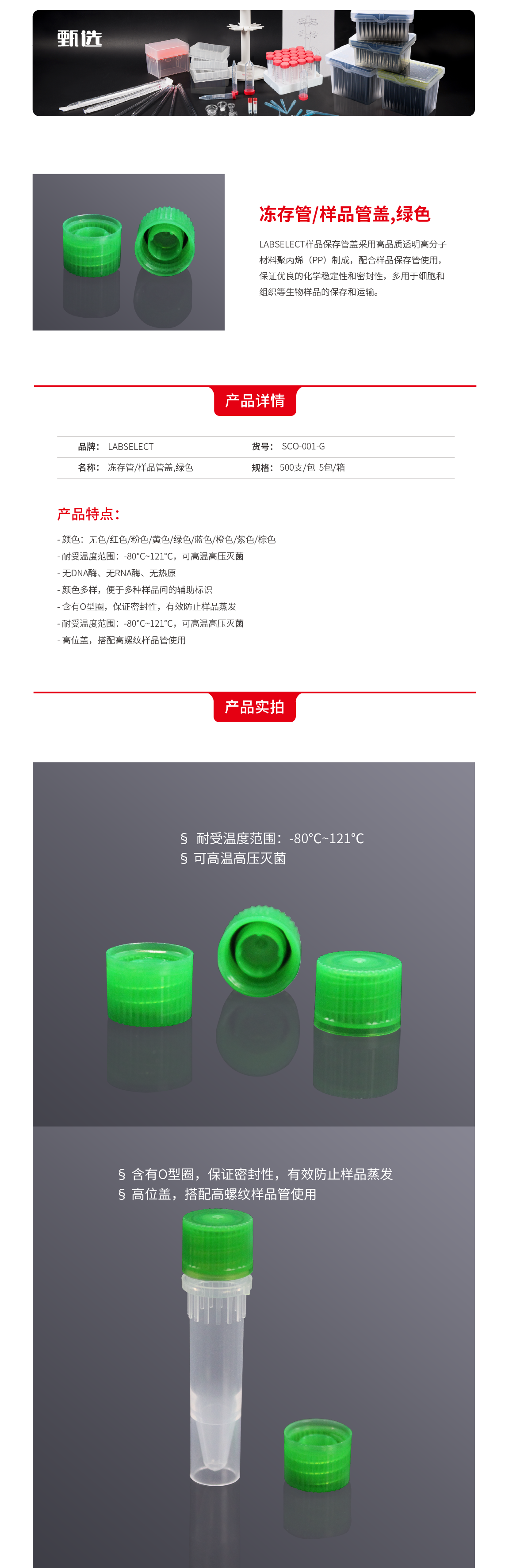 LABSELECT(甄选)SCO-001-G 冻存管/样品管盖,绿色